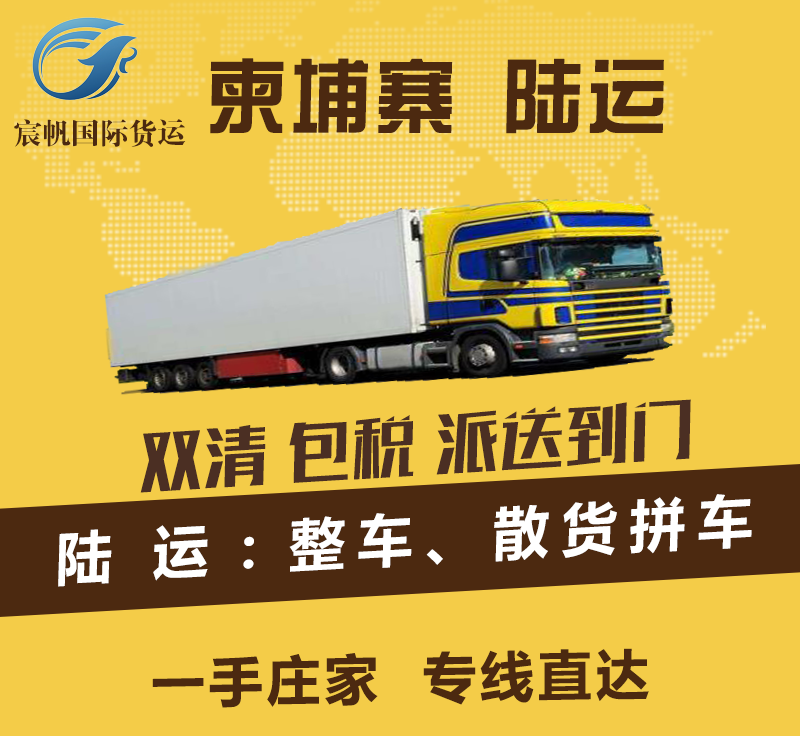 東莞市宸帆國(guó)際貨運(yùn)代理有限公司13年專注柬埔寨陸運(yùn)雙清專線,全國(guó)各地上門提貨或發(fā)貨到東莞陸運(yùn)到柬埔寨的倉(cāng)庫(kù),或整車可直發(fā)到廣西憑祥關(guān)或東興關(guān)進(jìn)行報(bào)關(guān)清關(guān),從越南陸運(yùn)過境快速直達(dá)柬埔寨金邊倉(cāng)庫(kù),再分發(fā)派送金邊或西港(西哈努克城)及其他地區(qū).東莞到柬埔寨陸運(yùn)全程約3300公里。 |