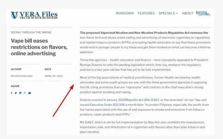 東南亞近期有一些熱點動態(tài)值得關(guān)注。如菲律賓擬議中的電子霧化法案,定于2022年5月生效,取消了對口味和在線廣告的限制,擬議的措施還允許在銷售點、直接營銷和互聯(lián)網(wǎng)上發(fā)布電子霧化和HTP等產(chǎn)品的廣告和促銷。言下之意,菲律賓在口味、網(wǎng)絡(luò)銷售方面都非常寬松。